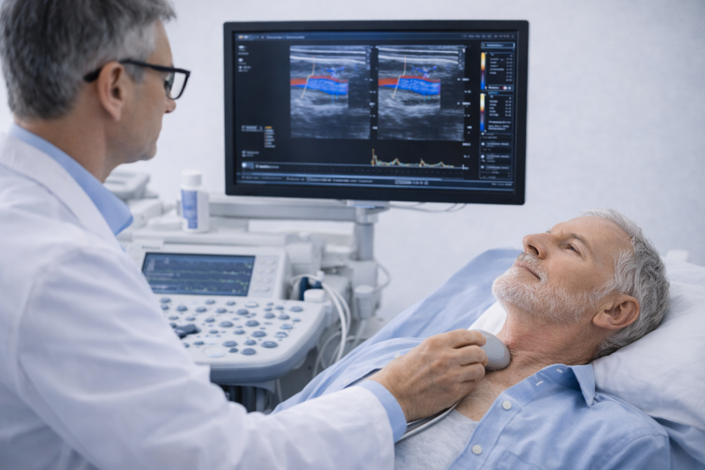 Die Ultraschalluntersuchung der hirnversorgenden Gefäße dient der Beurteilung der Durchblutung des Gehirns. Relevante und behandlungsbedürftige Gefäßverengungen können zuverlässig erkannt und das individuelle kardiovaskuläre Risiko eingeschätzt werden.