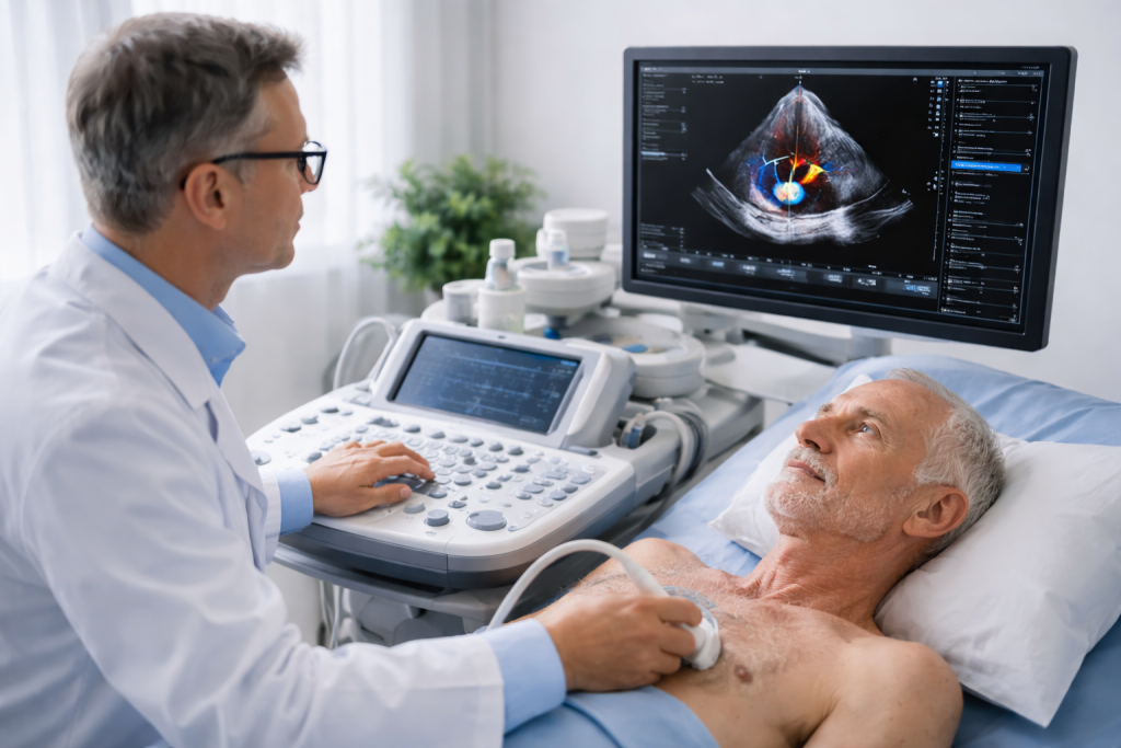 Die Echokardiographie – insbesondere mit farbkodierter Dopplertechnik – ist eine der wichtigsten kardiologischen Untersuchungen. Sie ist schmerzfrei, ohne Medikamente und liefert eine hohe diagnostische Aussagekraft.