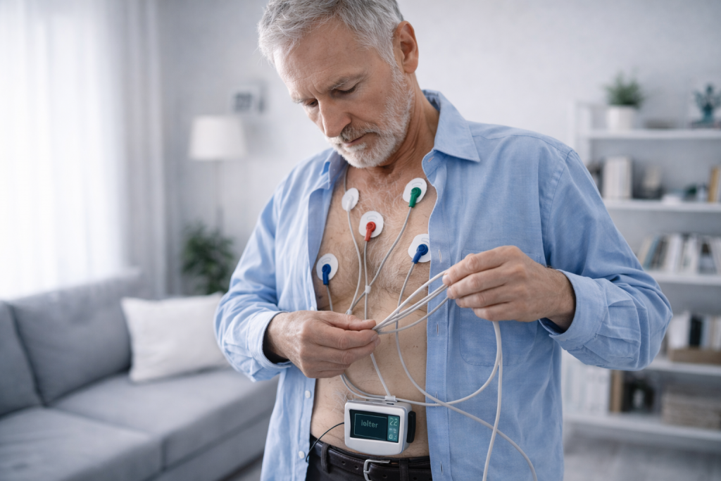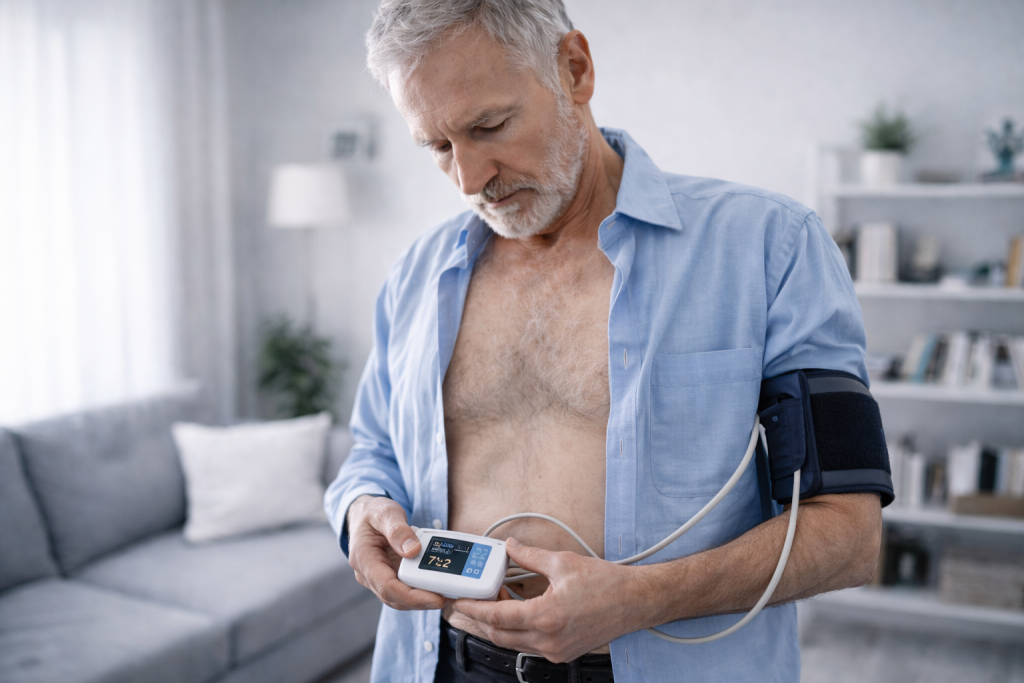 Beim Langzeit-EKG wird der Herzrhythmus über mindestens 20 Stunden aufgezeichnet, um relevante von harmlosen Herzrhythmusstörungen zu unterscheiden. Nicht jede Auffälligkeit ist behandlungsbedürftig.